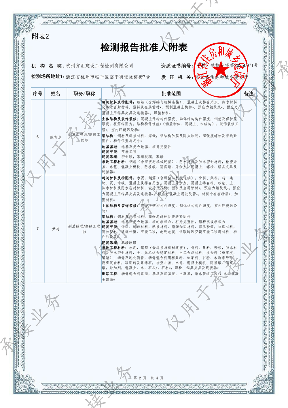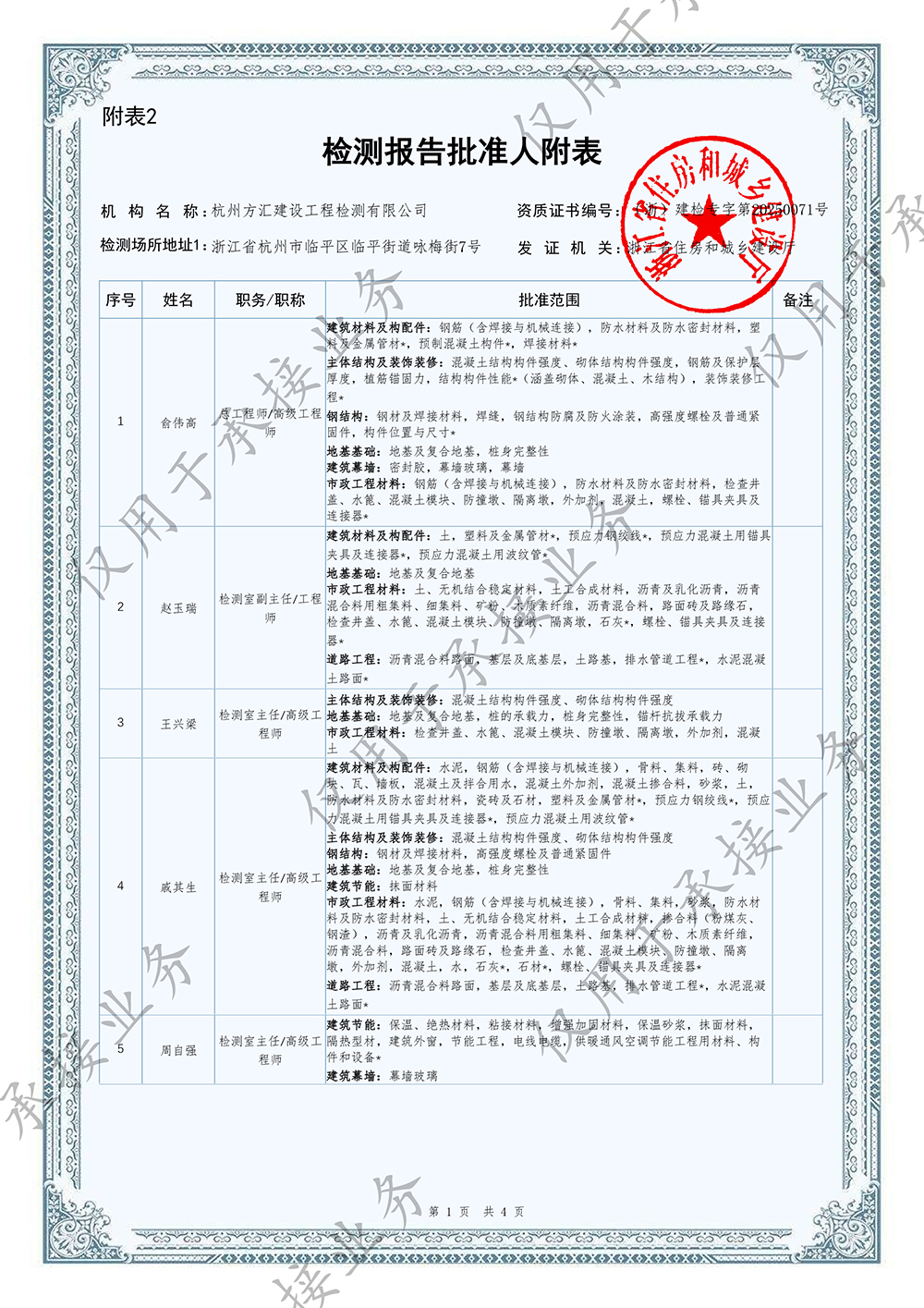 檢測報告批準(zhǔn)人附表