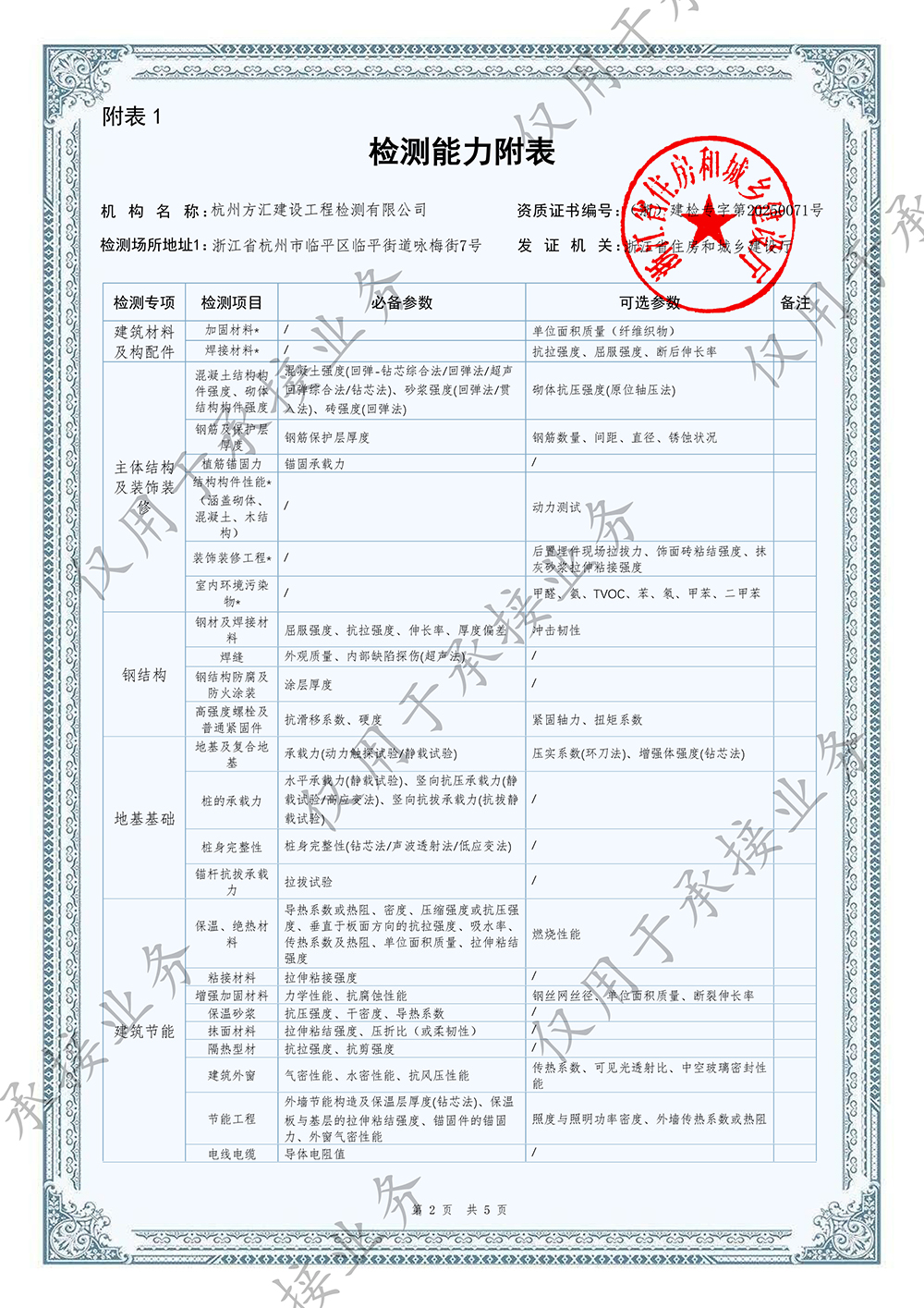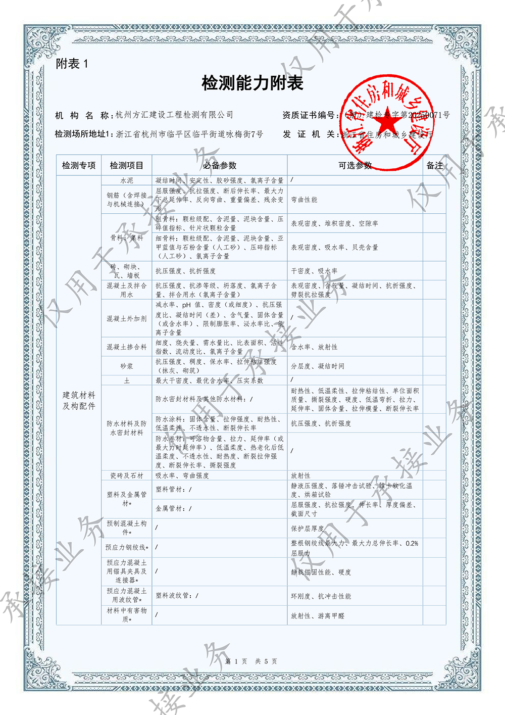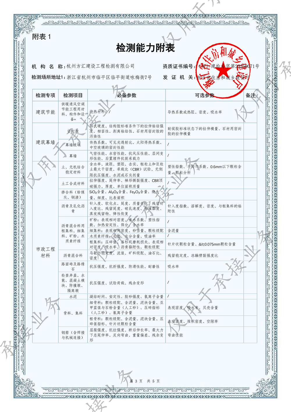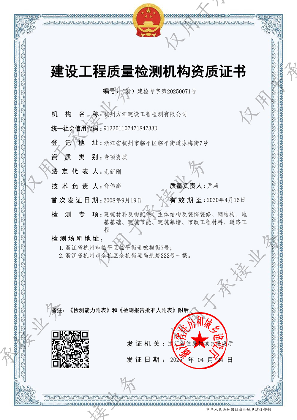 建設(shè)工程質(zhì)量檢測機(jī)構(gòu)資質(zhì)證書